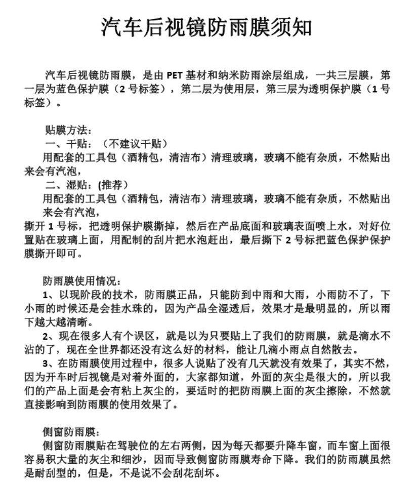Waterproof film in rear view mirror waterproof film rain-proof film