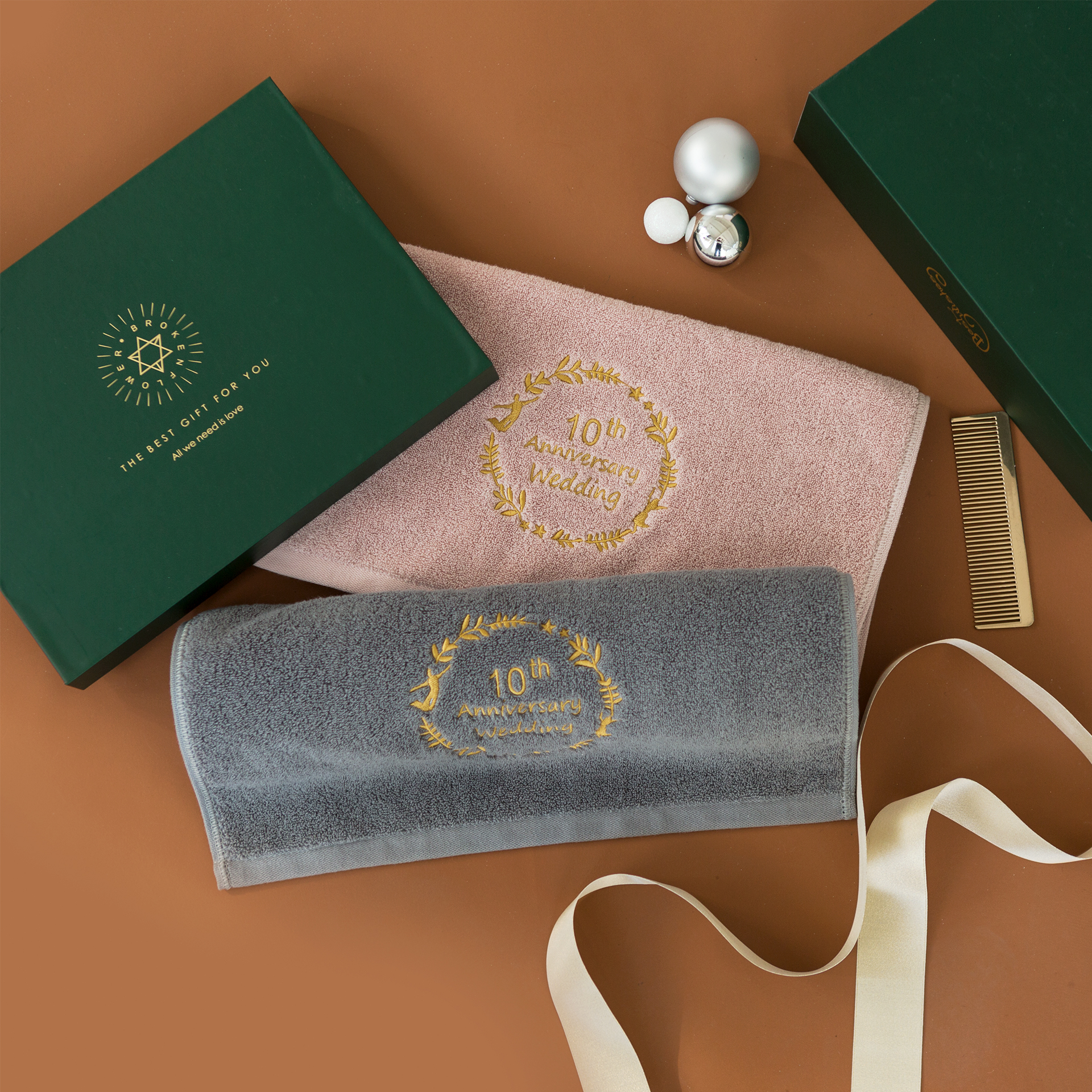 The company's high-end embroidery custom towel lettering printing custom love wedding anniversary gift anniversary