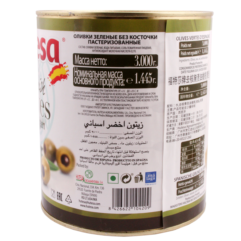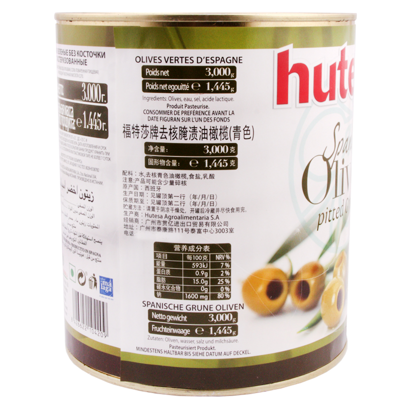 Hutesa olives Fordsha de-nucleated pickled green olives 3kg canned olives imported from Spain