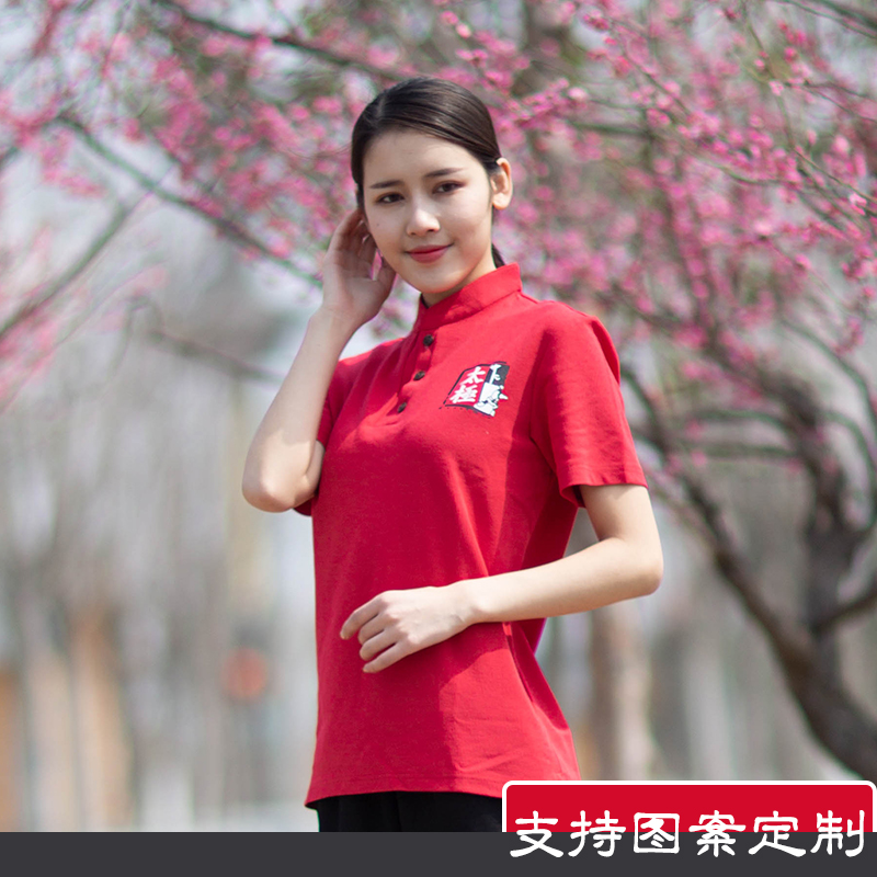 New Taijiquan suit T-shirt short-sleeved Taijiquan cultural shirt men's and women's summer thin section martial arts training clothes performance clothes