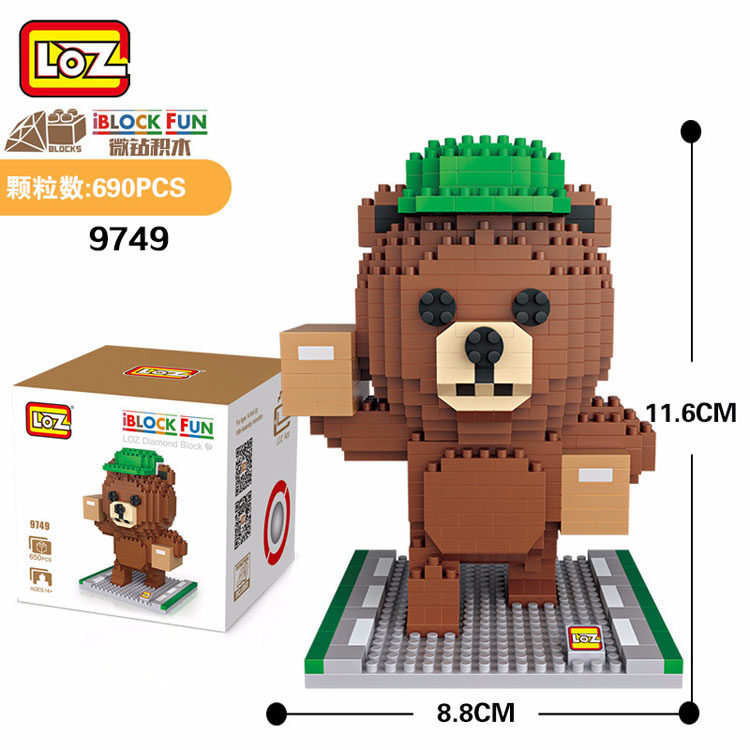 LOZ micro-drilling puzzle plastic building block toy cute bear pink leopard big mouth duck express bear 9739
