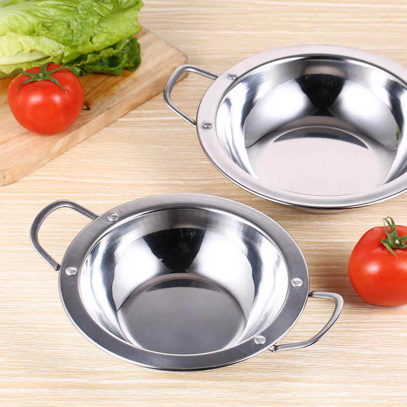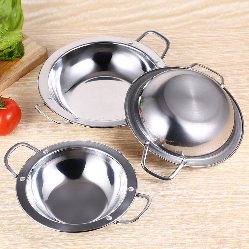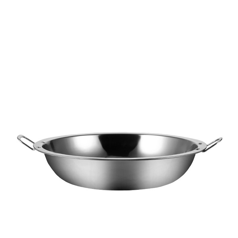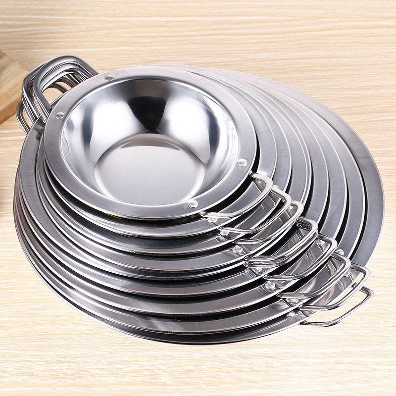 Tethick stainless steel wide edge pan flat bottom dry pan pans pans Double ear shallow hot pot Spicy Crab Crayfish Special Shallow Pan