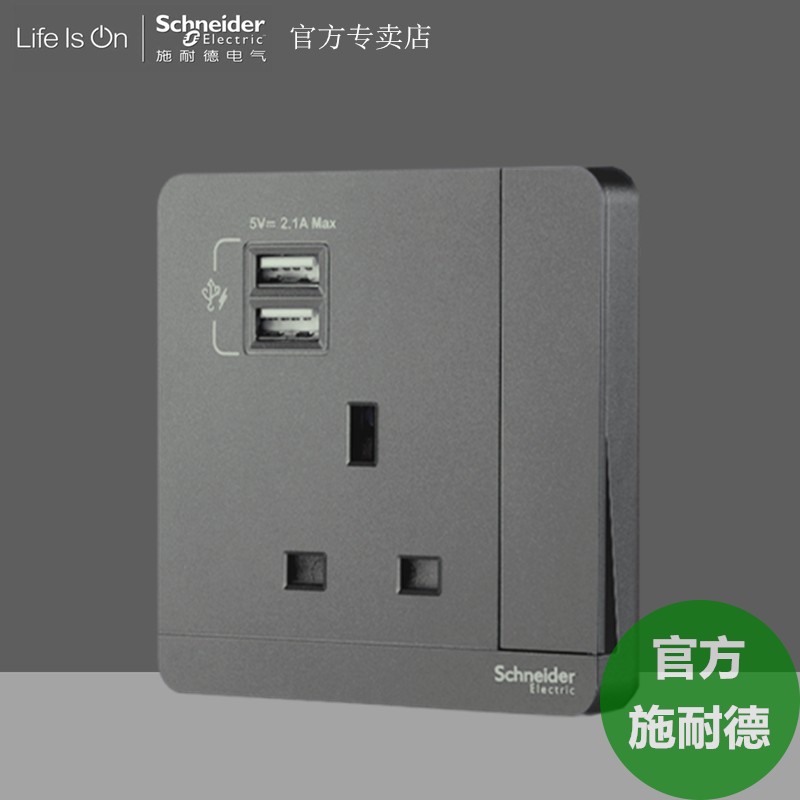 Schneider switch socket deduction fluorescent gray 13A English - standard port with switch dual USB charging star ash