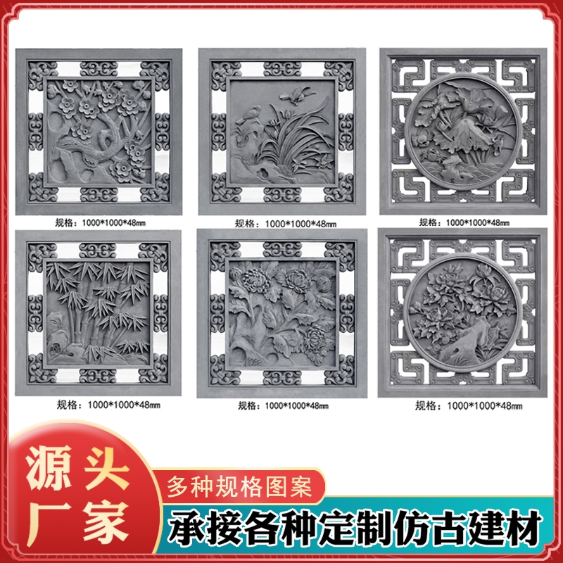Brick carving Antique brick carving Chinese hollow flower window Rectangular round octagonal hollow wall Ancient cement flower window