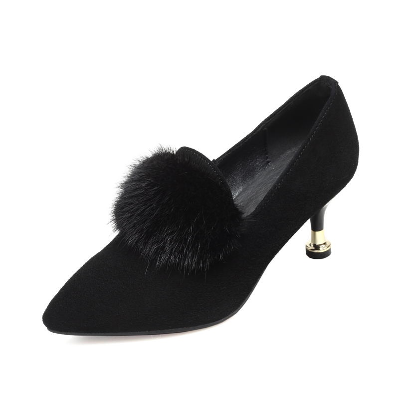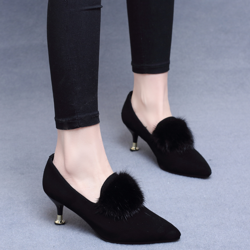 Pointed-toe stiletto shoes women's 2022 spring and autumn new leather fur shoes soft leather high-heeled shoes matte mid-heel leather shoes