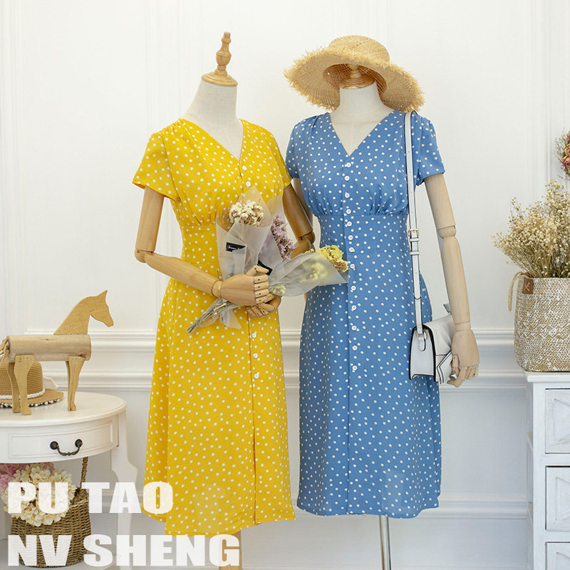 Grapes girls pro-sub-dress Podot Lean Snowspun Ocean Dress Summer Dress New Dot Girl Dress Big Size Female Dress