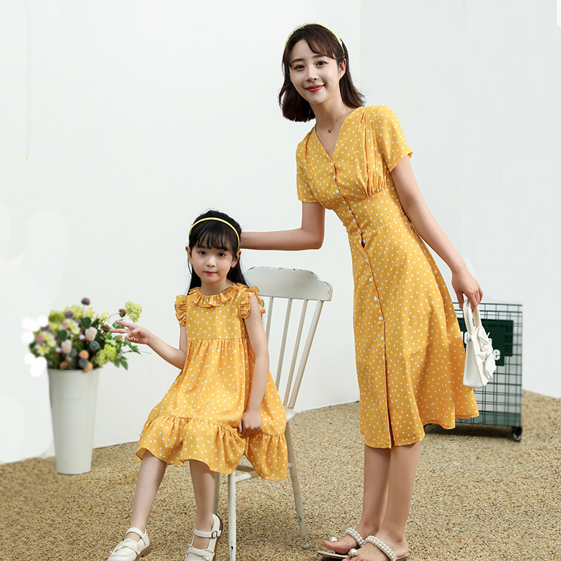 Mother and daughter in a dress.