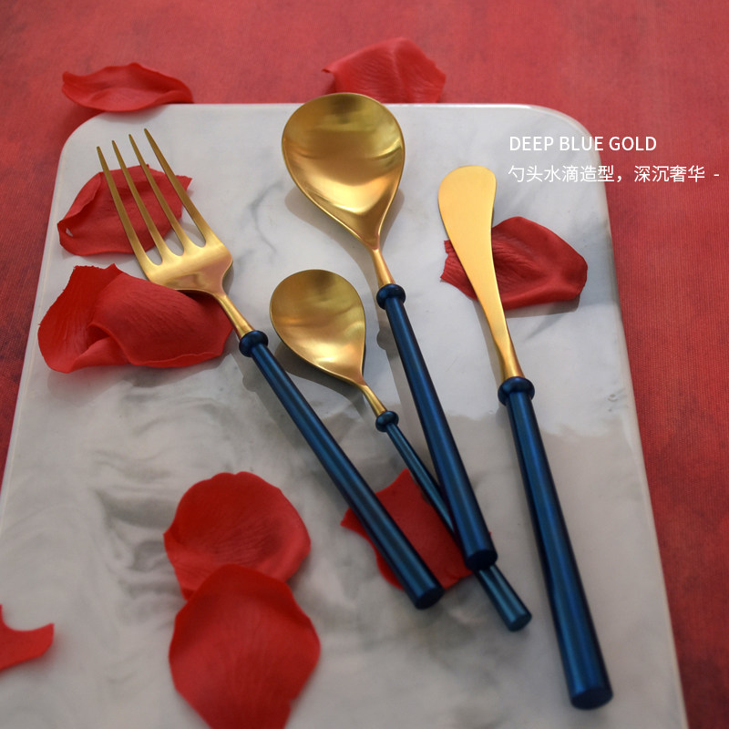 Nordic Style Drop Blue Star Foggy Noodle Restaurant Home 304 Stainless Steel Steak Knife Fork Spoon Coffee Spoon