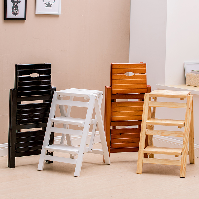 Solid wooden stairs household folded thick ladder two-step staircase room climbing ladder stairs