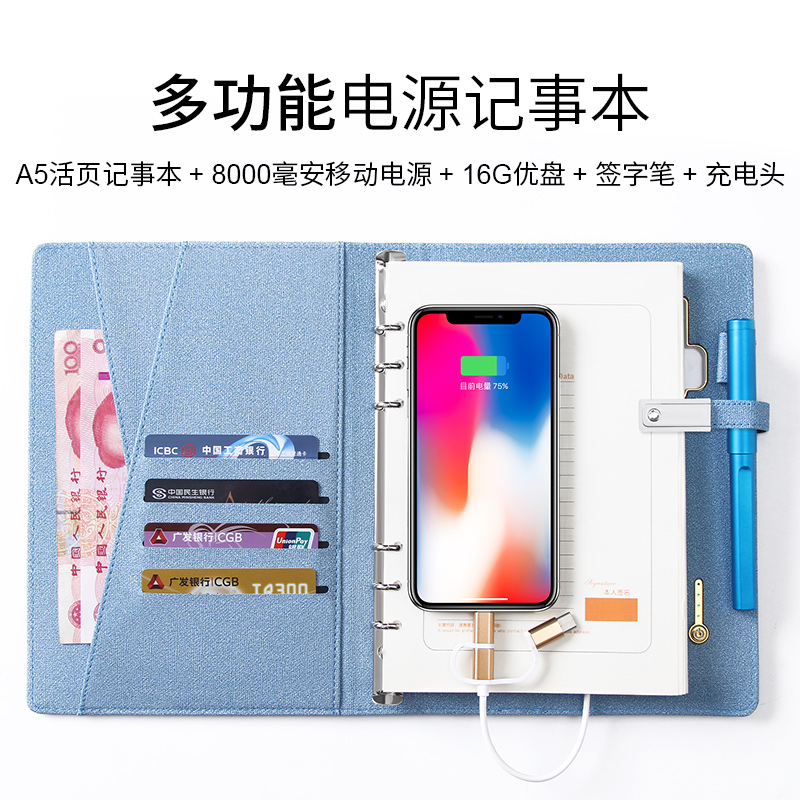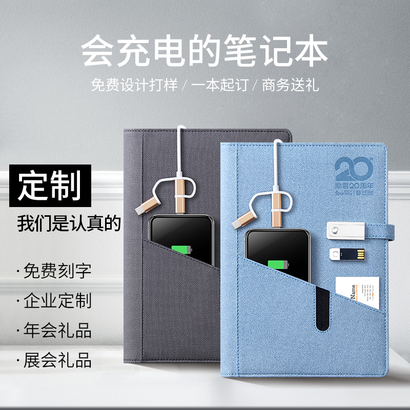 Charging notebook multi-function high-end leather noodle book U disk book custom LOGO power binder detachable meeting record company gift Enterprise set office stationery notepad