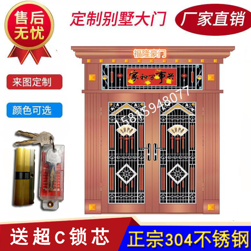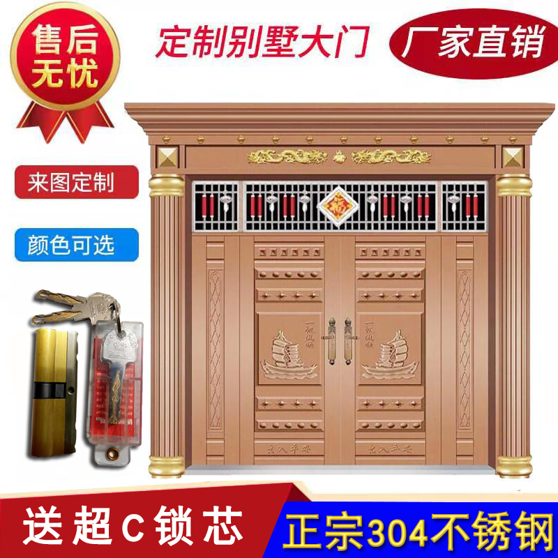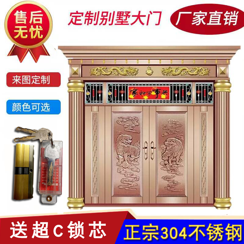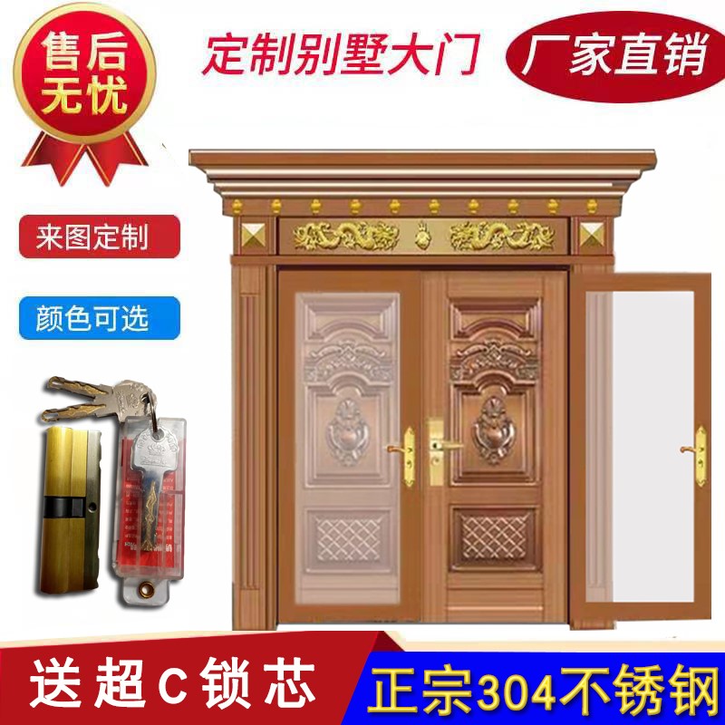 304 stainless steel double open door of rural household rose gold into the door of self - built house villa four open child theft door
