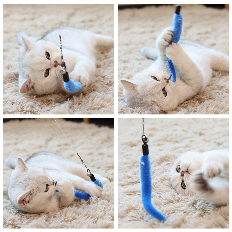 Caterpillar retractable cat toy stick with bell wire feather cat toy stick