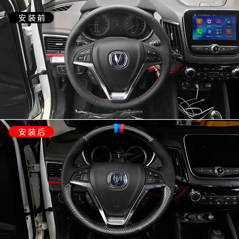 Cs55 Special Hand Sewing Steering Wheel Cover (Carbon Fiber Tricolor) cs55 Special Hand Sewing Steering Wheel Cover (Black Skin Red Line) cs55 Special Hand Sewing Steering Wheel Cover (Black Red Skin Red Line)