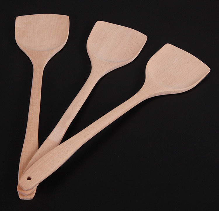 Beech Wood Pan Shovel Solid Wood Shovels No to pan kitchen shovel Home Long handle No paint pan shovel frying shovel high temperature resistant frying pan
