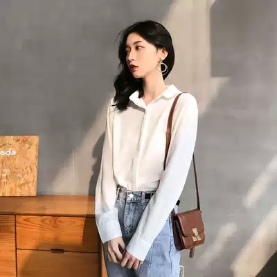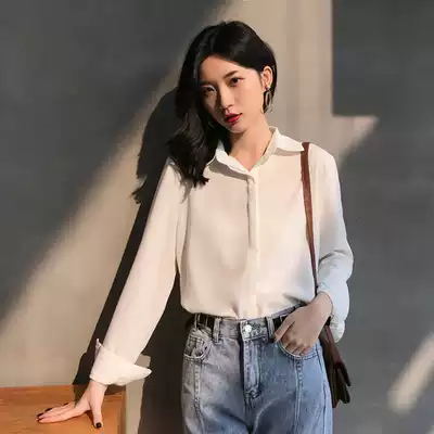 Chiffon shirt women's retro Hong Kong flavor Korean version long-sleeved top 2021 new foreign school loose white shirt female occupation