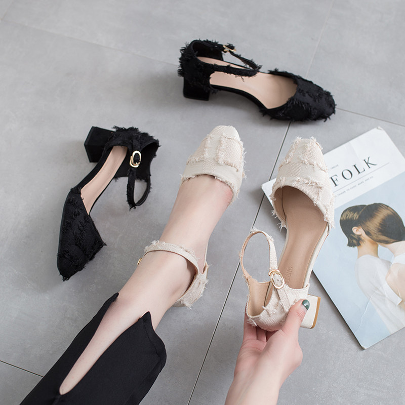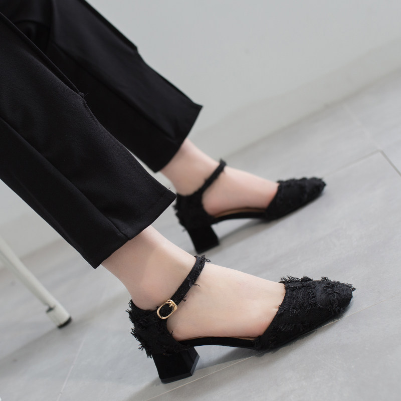 Coarse heel single shoe woman 2022 new summer 100 hitch 100 lap cingulum small code 32 hollow 33 high heel shoes big size women's shoes