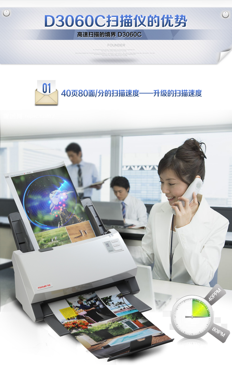 Founder (Founder) D3060C SCANNER A4 Color high speed double-sided automatic in paper feed paper style color