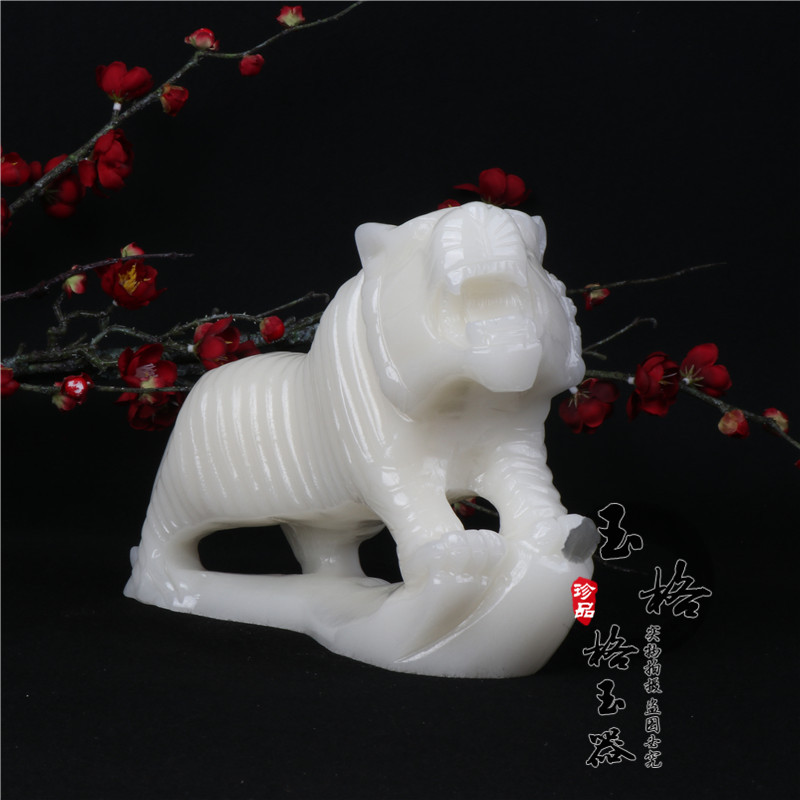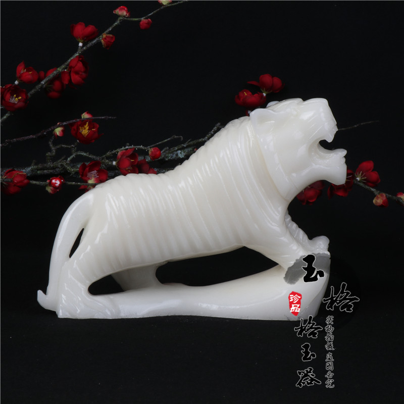 Afghanistan white jade tiger Four gods and beasts White tiger zodiac tiger Feng Shui town house Living room study desktop tiger ornament