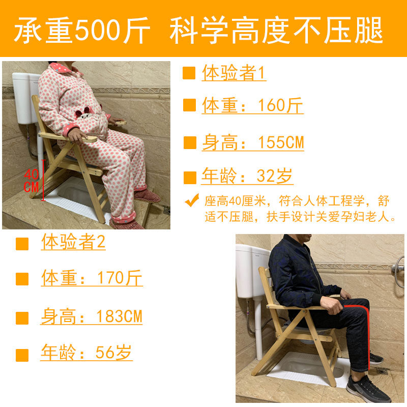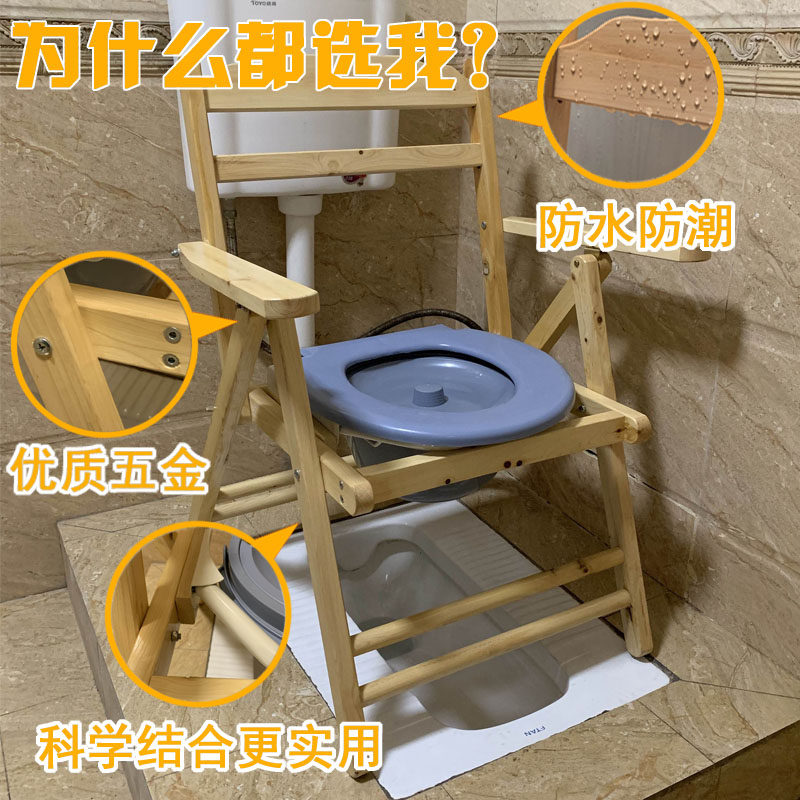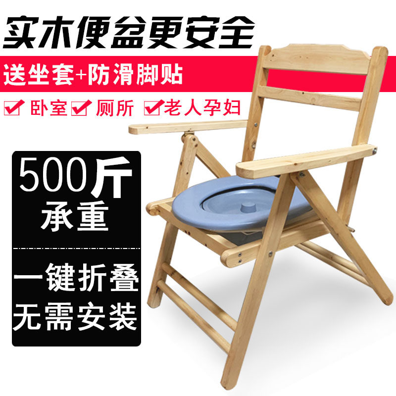 Solid wood armrests sitting defecating chair for elderly pregnant women with physical and mental disabilities The wooden sitting stool toilet stool toilet folding barrel for home