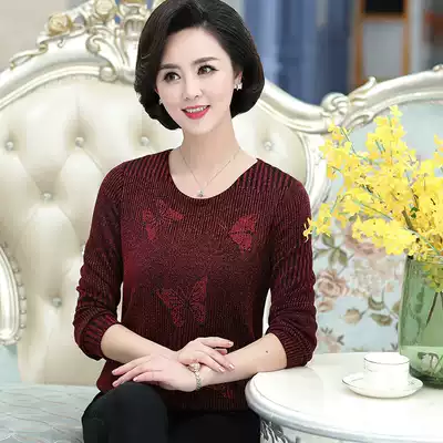 Middle-aged women's spring and autumn knitted plus velvet base shirt 40-50 middle-aged mother long sleeve T-shirt small shirt autumn coat