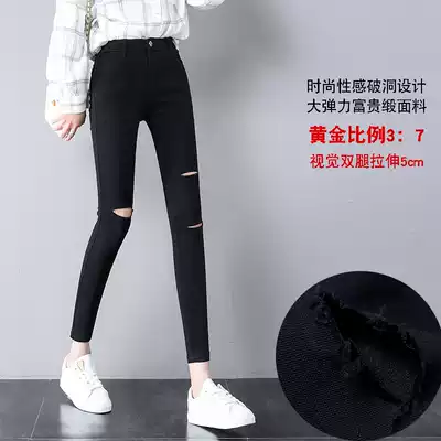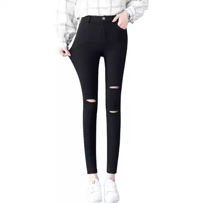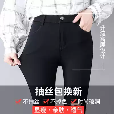 Pierced inner pants female outer wear spring and autumn 2021 new high waist thin pencil black small feet nine-point pants