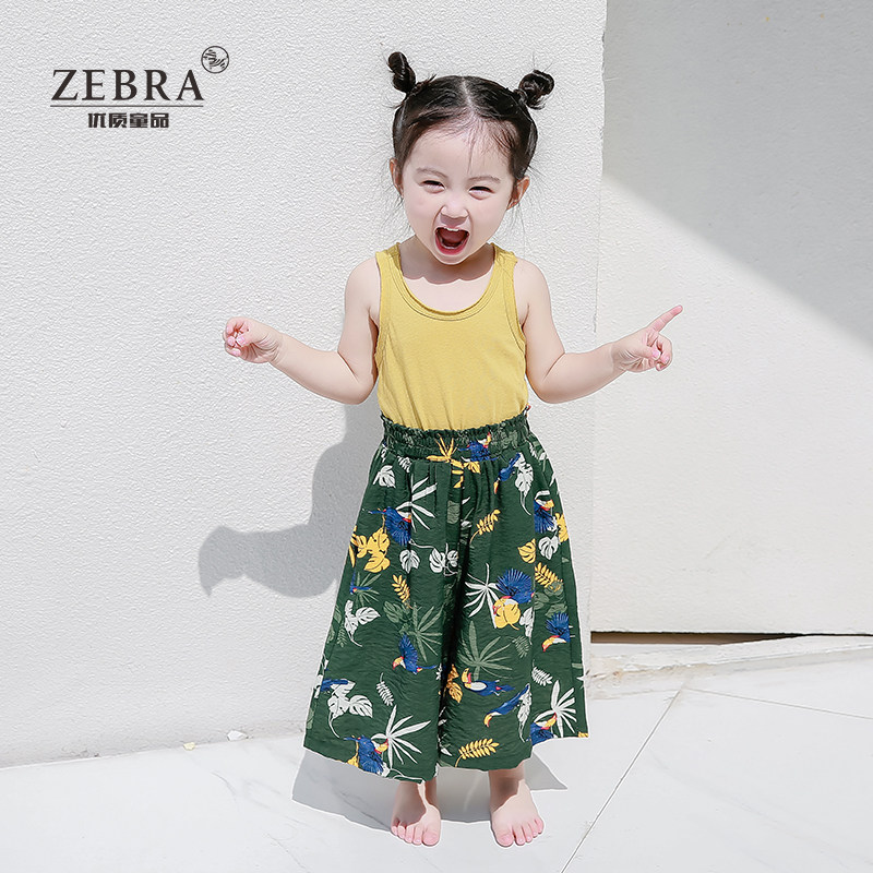 (Discount)Girls ' wide-leg pants Summer mother and daughter loose nine-point pants parent-child casual pants thin three-point pants Western style