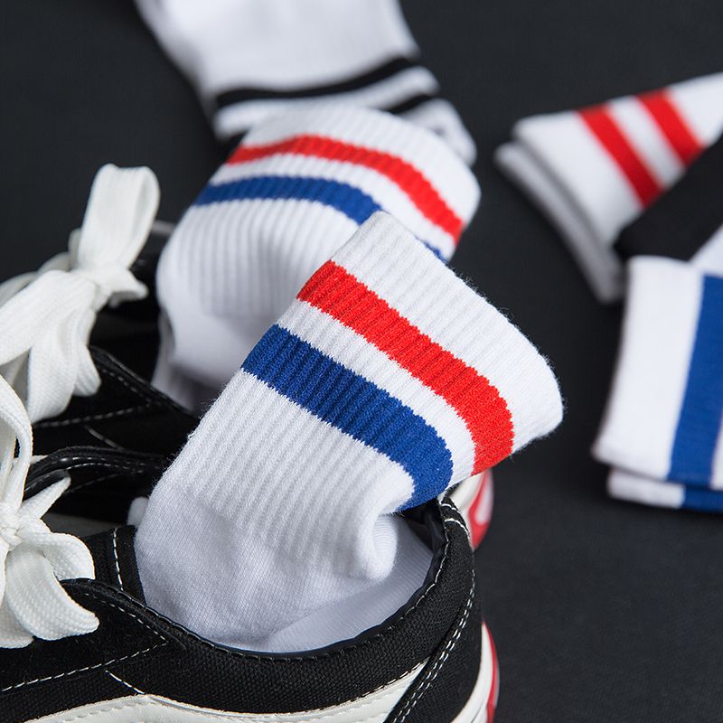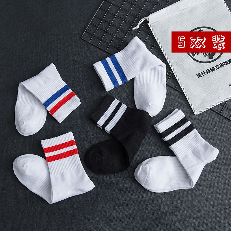 Three-bar socks for men and women in the Korean version of ins White Stockings trend hip-hop middle waist black stripes autumn high tube