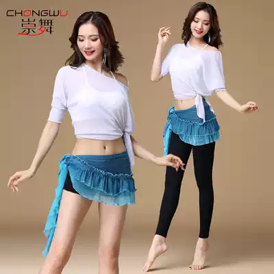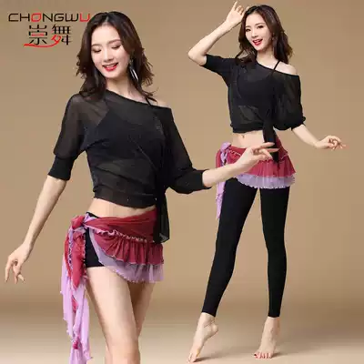 Belly dance 2021 new beginner practice suit oriental dancer autumn and winter mesh top modal pants cover hip towel