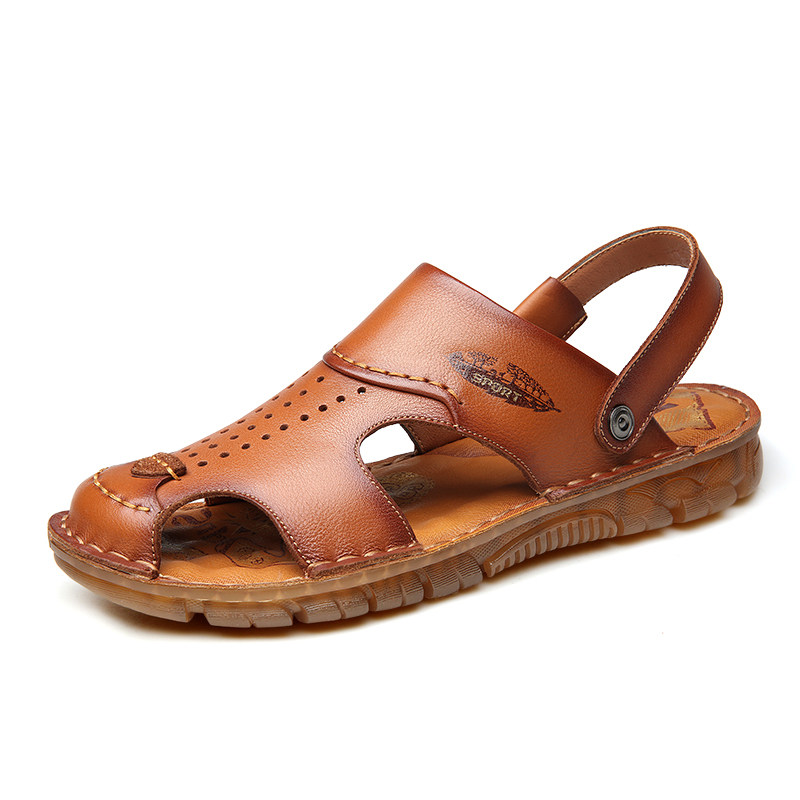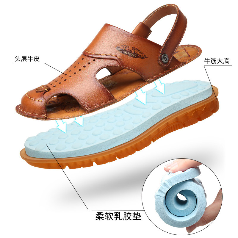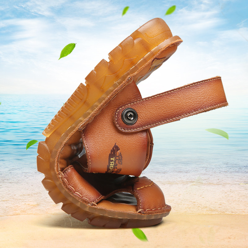 Sandals men's wave Summer 2022 new non-slip sandals shoes Dual use Baotou Men's casual genuine leather soft bottom beach shoes