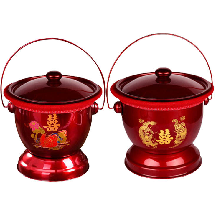 Wedding Enamel Spittoon Wedding Celebration Newcomer Children and grandchildren Bucket Home Toilet Dragon Pineapple mandarin Twin Delight Handbag lid spittoon