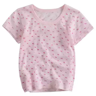 Japanese new summer thin children's T-shirt cotton mesh half-sleeve boys and girls round neck short sleeved boneless top
