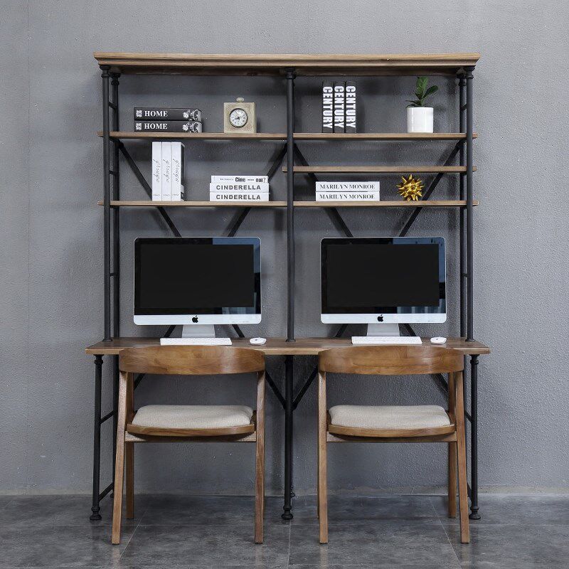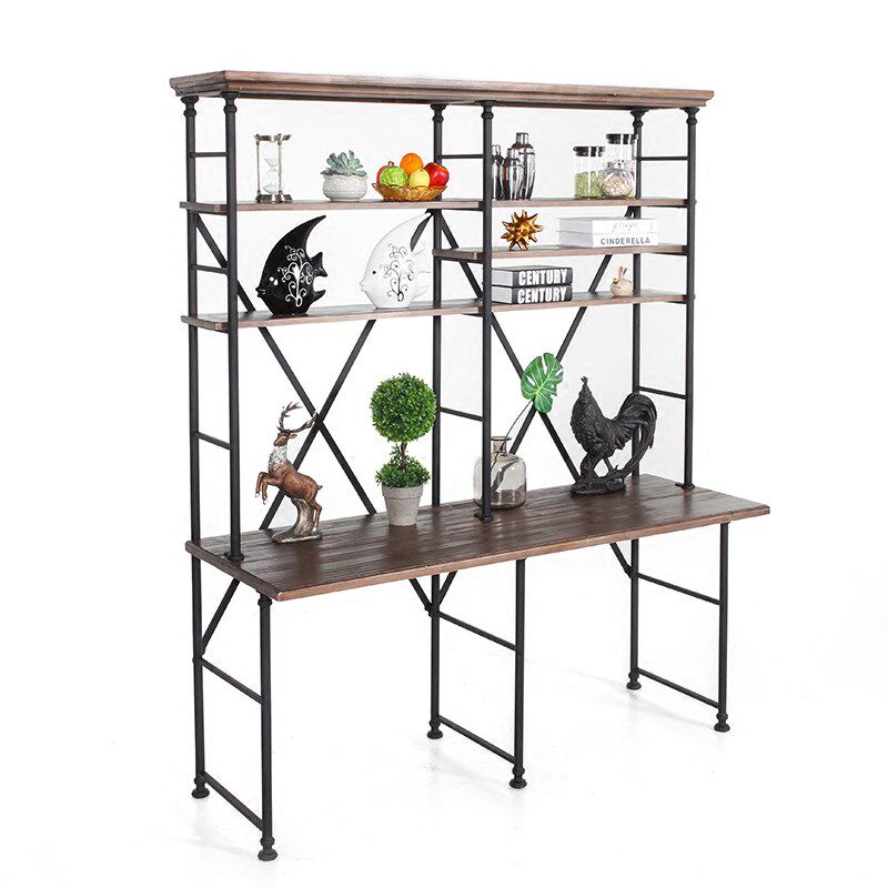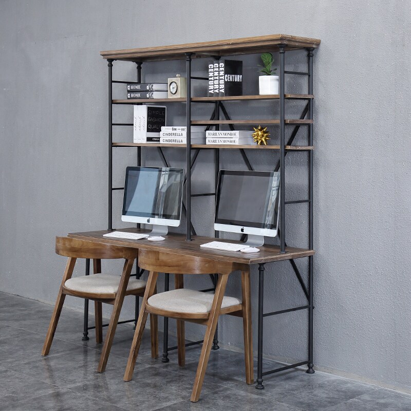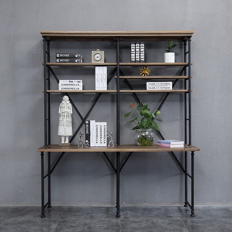 American Loft Comeback Ancient Iron Art Floor Desk Bookcase Bookcase Bookcase Combination Solid Wood Computer Desk Made Old Disposal Show Shelf