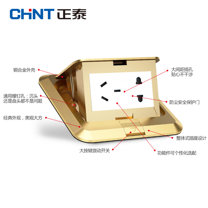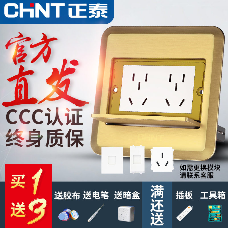 Zhengtai ground socket ultra-thin waterproof concealed slide cover Double five-hole multifunctional internet floor socket to insert home