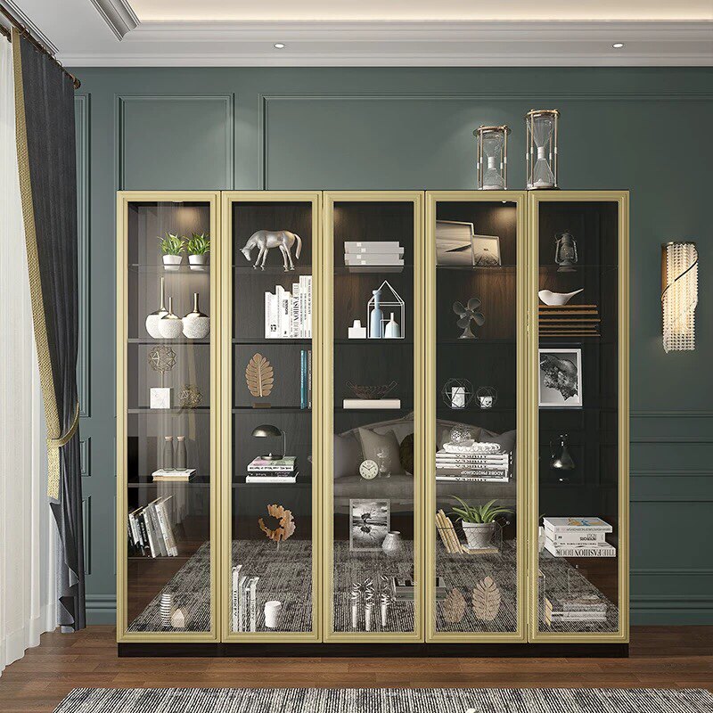 Light luxury post-modern solid wood corner bookcase Nordic display combination bookshelf with glass door office bookcase accessories