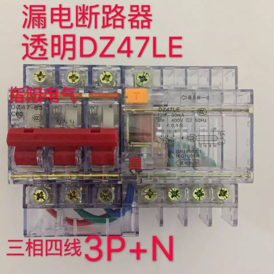 Transparent DZ47LE-63 Air leakage switch protector 1P 2P 3P 4P Circuit breaker 63A 32A 40A