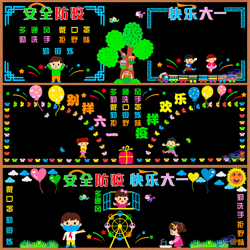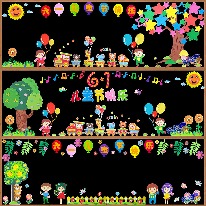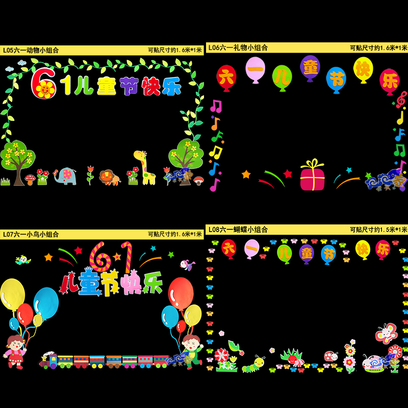 61 Children's Festival Themed Class Culture Wall Classroom Placement Materials Black Board Newspaper Decoration Wall Sticker Elementary School Kindergarten