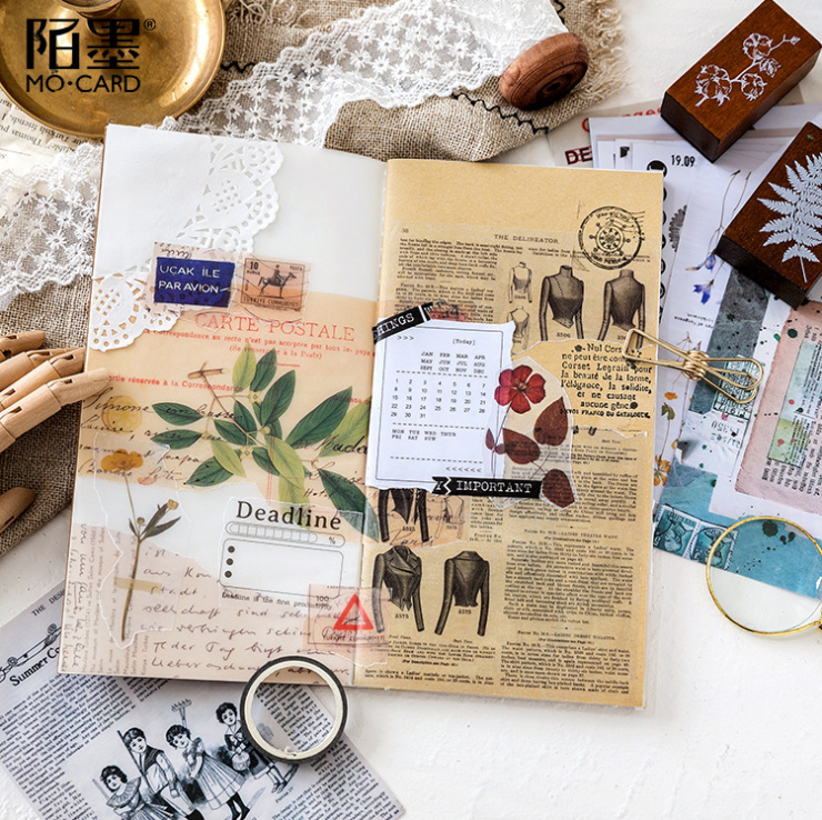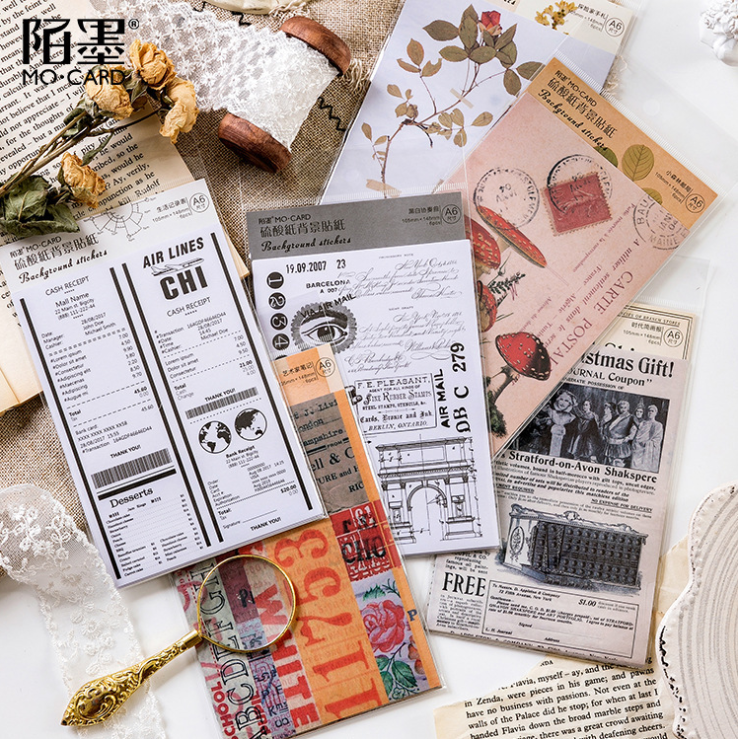 Junk Journal Mo ink sulfuric acid paper background sticker hand account decoration base retro plant black and white