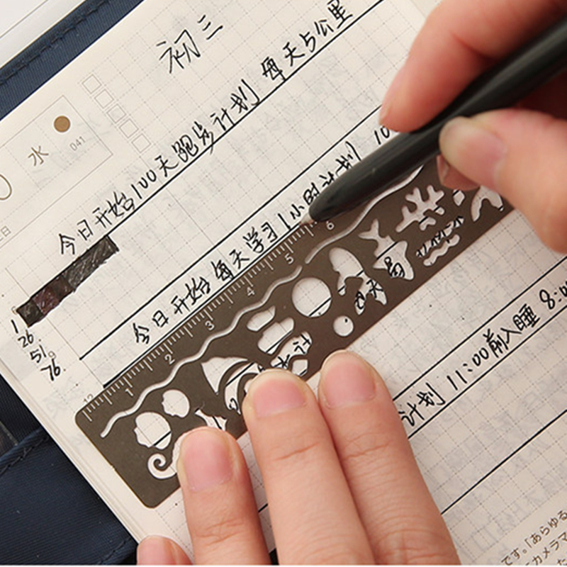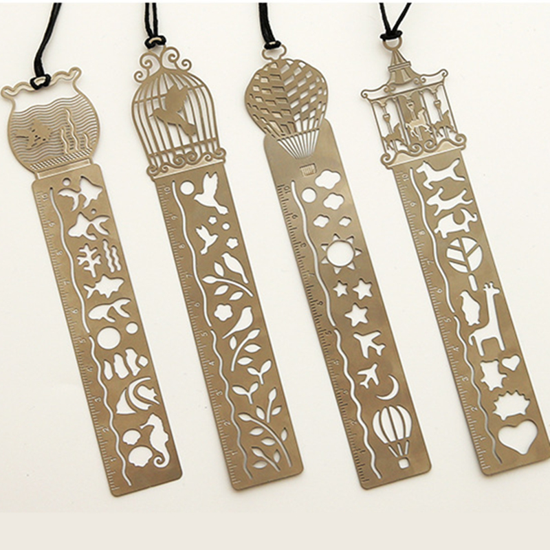Handmade ruler bookmark lace ruler album DIY cartoon pattern metal painting template ruler hollow hand account ruler