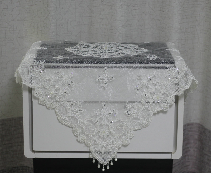 European-style lace double-layer yarn bedside table refrigerator tea set tea tray dust-proof multi-use cover towel cover gray washing machine cover cloth