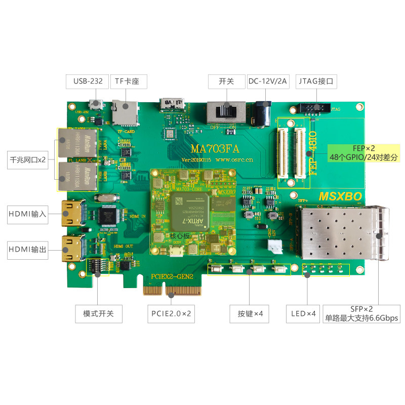 Mi Lianke MA703FA-35T]XILINX FPGA A7 development board PCIE optical communication Ethernet Artix