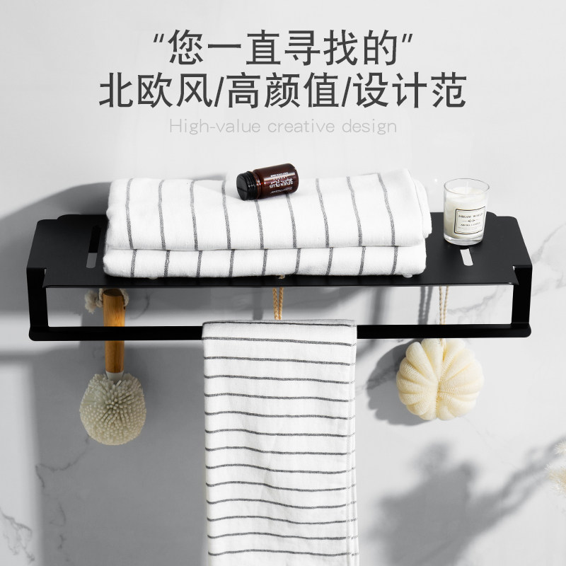 Makeup Room 304 Stainless Steel Creative Bath Towel Rack Hung Wall Bathroom Shelve Towel Rack Black towel rack
