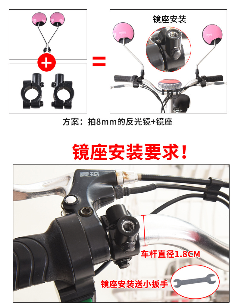 Electric vehicle reflector scooter rearview mirror electric motorcycle micro convex rear mirror universal 8mm
