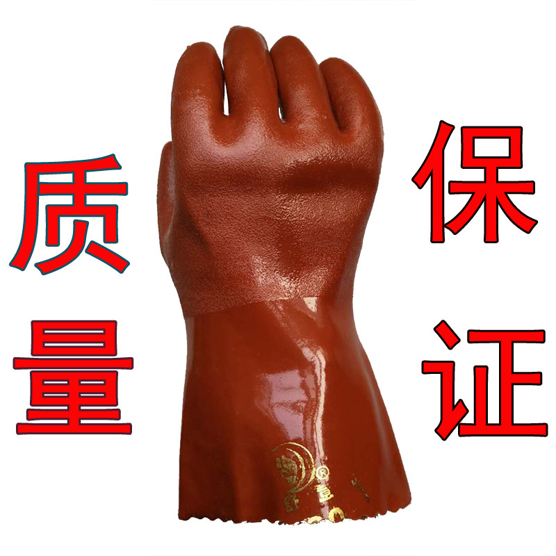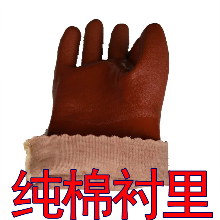 Shuyi 688 coffee oil-resistant acid and alkali-resistant thickened PVC cotton wool dipped plastic labor insurance protective gloves