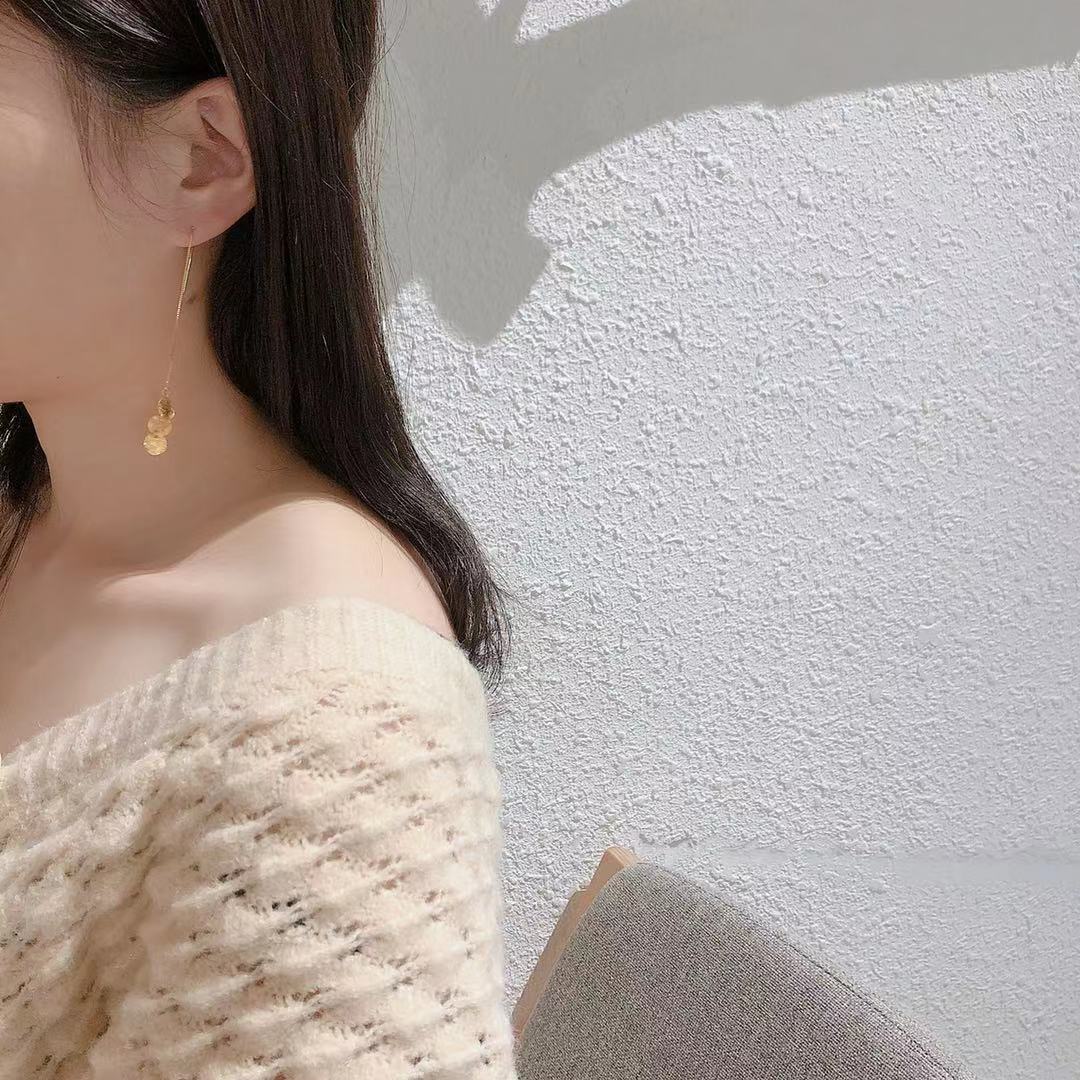 Flower Su Frost S925 pure silver ear line is simple and fashionable and high - sensation face thin super - fairy temperament