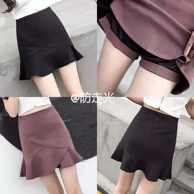 Skirt women's autumn Korean version of high waist A- line dress ruffled skirt fishtail skirt skirt pants anti-light skirt