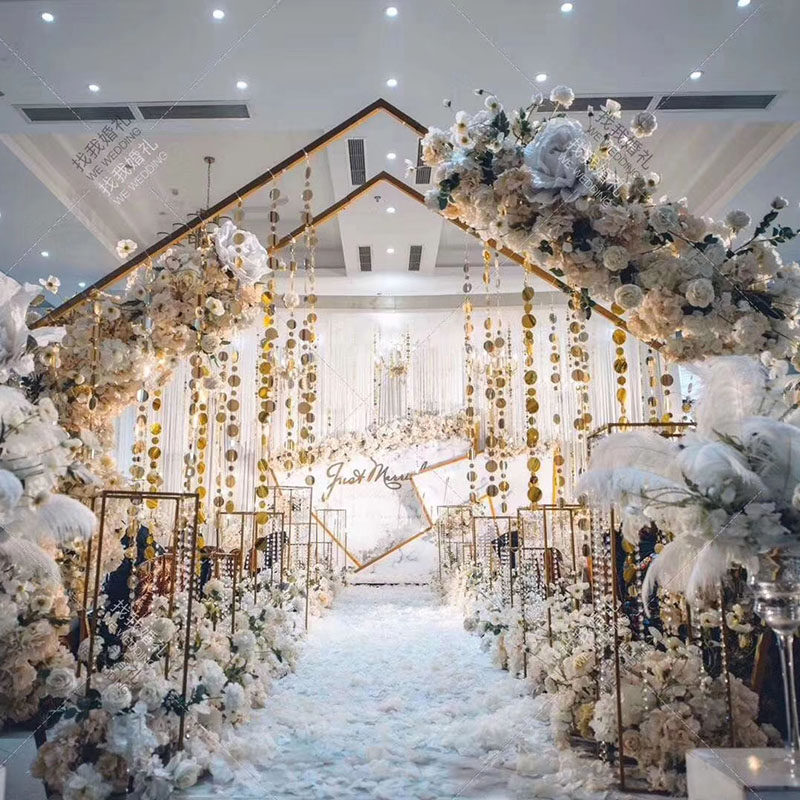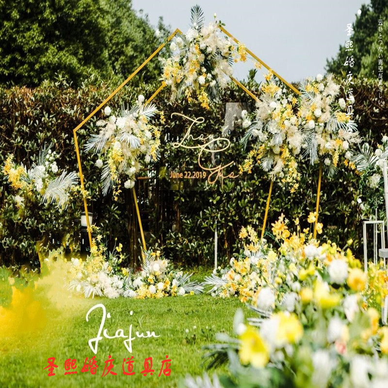 New wedding polygonal wrought iron arch prismatic props stage background decoration pentagonal wedding arch arrangement
