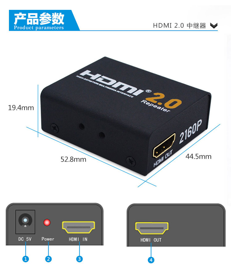 hdmi2 0 Repeater Signal Amplifier Extender 60m HD enhanced support 4K 2K 3DAYE-01