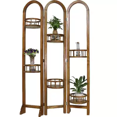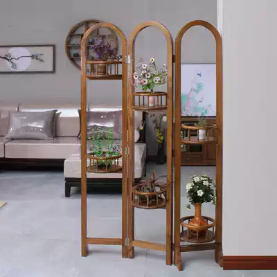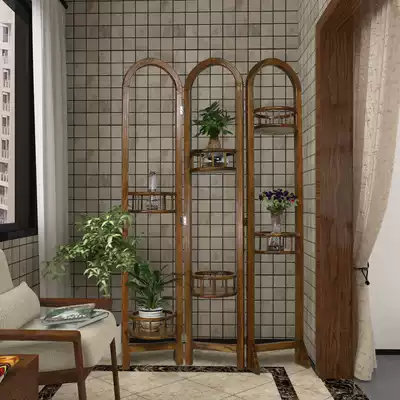 American country screen partition folding screen entrance Living room Bedroom office Chinese solid wood folding mobile flower stand