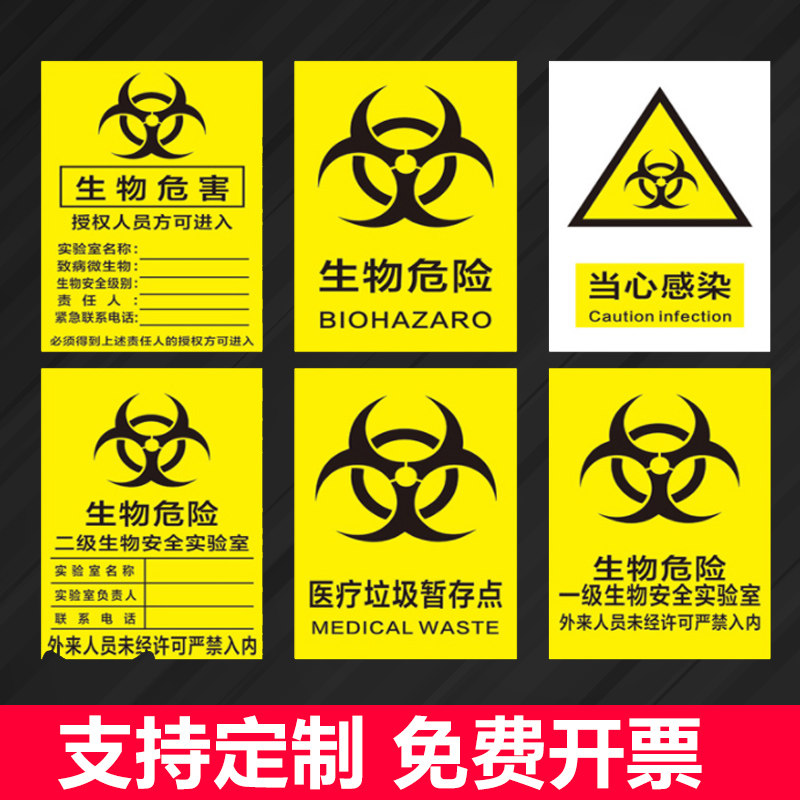 Biohazard label sticker level 1 level 2 safety hazard warning sign laboratory management system medical waste garbage temporary storage point prohibit smoking tip sticker warning no entry sign board