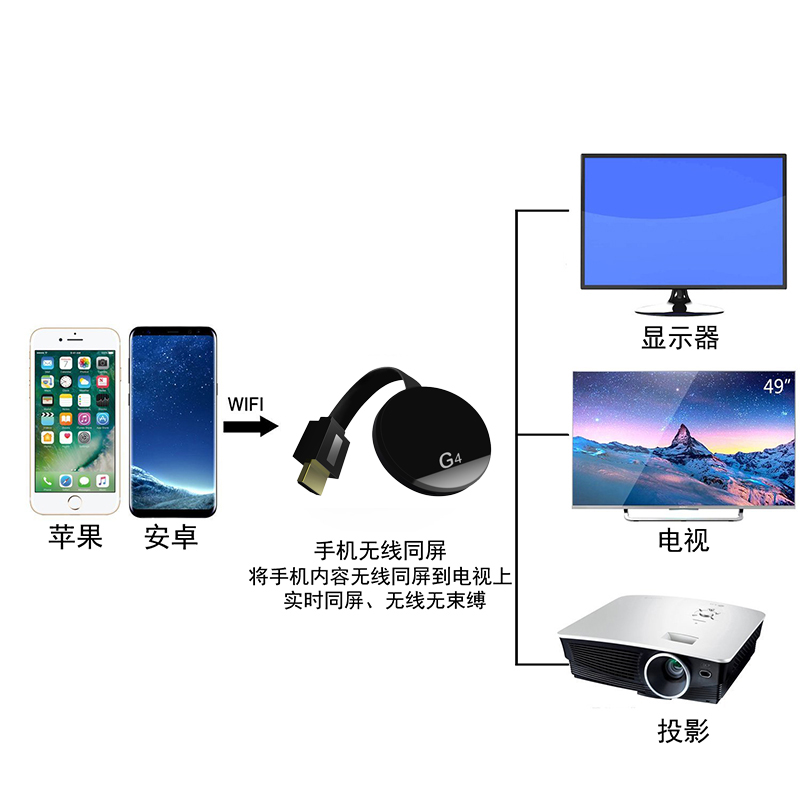 Wireless high-definition co-screen Airplay is suitable for Apple's Huawei Android phone multi-screen interactive TV projection